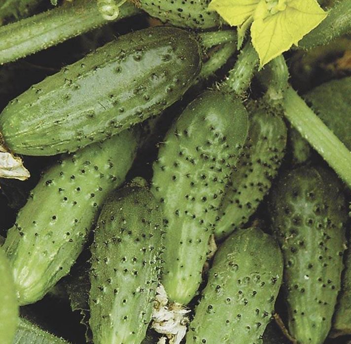 Плод удлиненно-яйцевидной формы, крупнобугорчатый, темно-зеленого цвета, длиной 9–12 см. массой 100–120 г. Ценность сорта: дружное созревание плодов, отличные вкусовые качества, устойчивость к комплексу болезней.