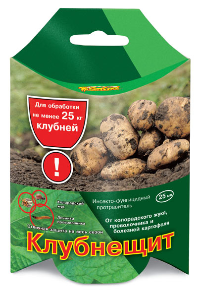 Для обработки клубней перед посадкой. Защищает картофель от проволочника, от колорадского жука и от комплекса болезней.